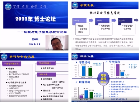 为贯彻落实太阳集团tyc33455人才强校战略,2022年3月27日上午,由太阳成集团tyc33455ccww举办的“太阳集团tyc334552022年博士论坛—物电学院分论坛“取得圆满成功。本次分论坛旨在为海内外优秀人才和物电学院之间搭建交流与合作的平台,增进相互信任,加深青年学者对学院的全面了解,促成高层次人才来学院干事创业。