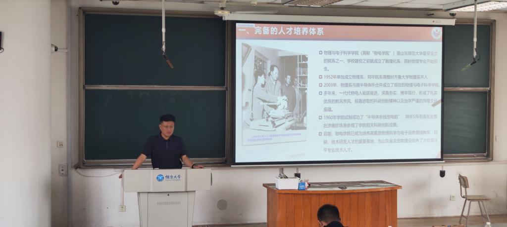 为激励学生科学规划考研路径与目标,拓宽深造渠道,助力研考学子拓展择校视野,6月6日下午,我院特邀山东师范大学物理与电子科学学院来院进行研究生招生宣讲。山东师范大学物电学院副院长张超教授、梁春豪教授担任主讲。2022级全体意向考研学生参会。宣讲会由学院辅导员李雯君老师主持。