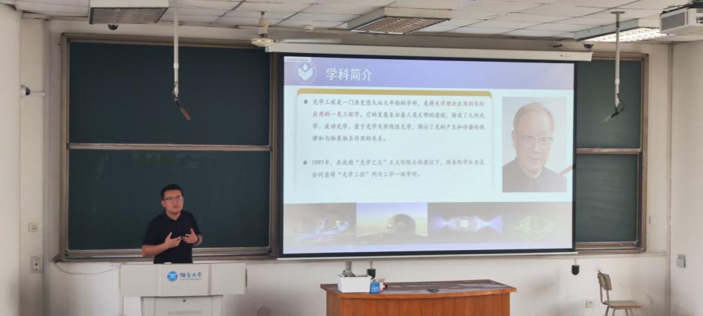 梁春豪教授则重点介绍了光学工程、光电信息工程两个专业的情况。他从专业概况、研究方向、平台建设、科研条件、研究成果及学习环境等方面进行了系统讲解,向同学们展示了学院优越的学习氛围和优良的育人环境。